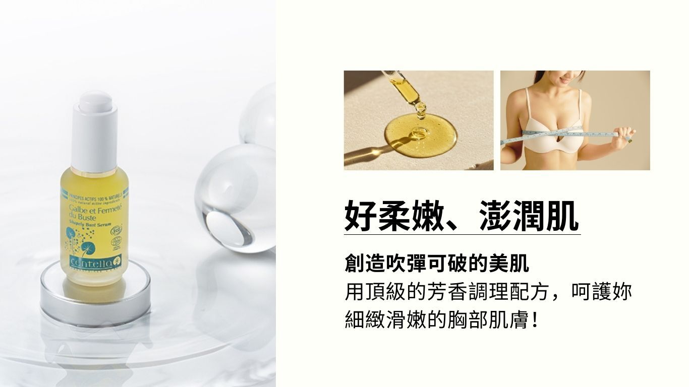 ➤ 多元植物油柔潤胸部肌膚,細緻光滑