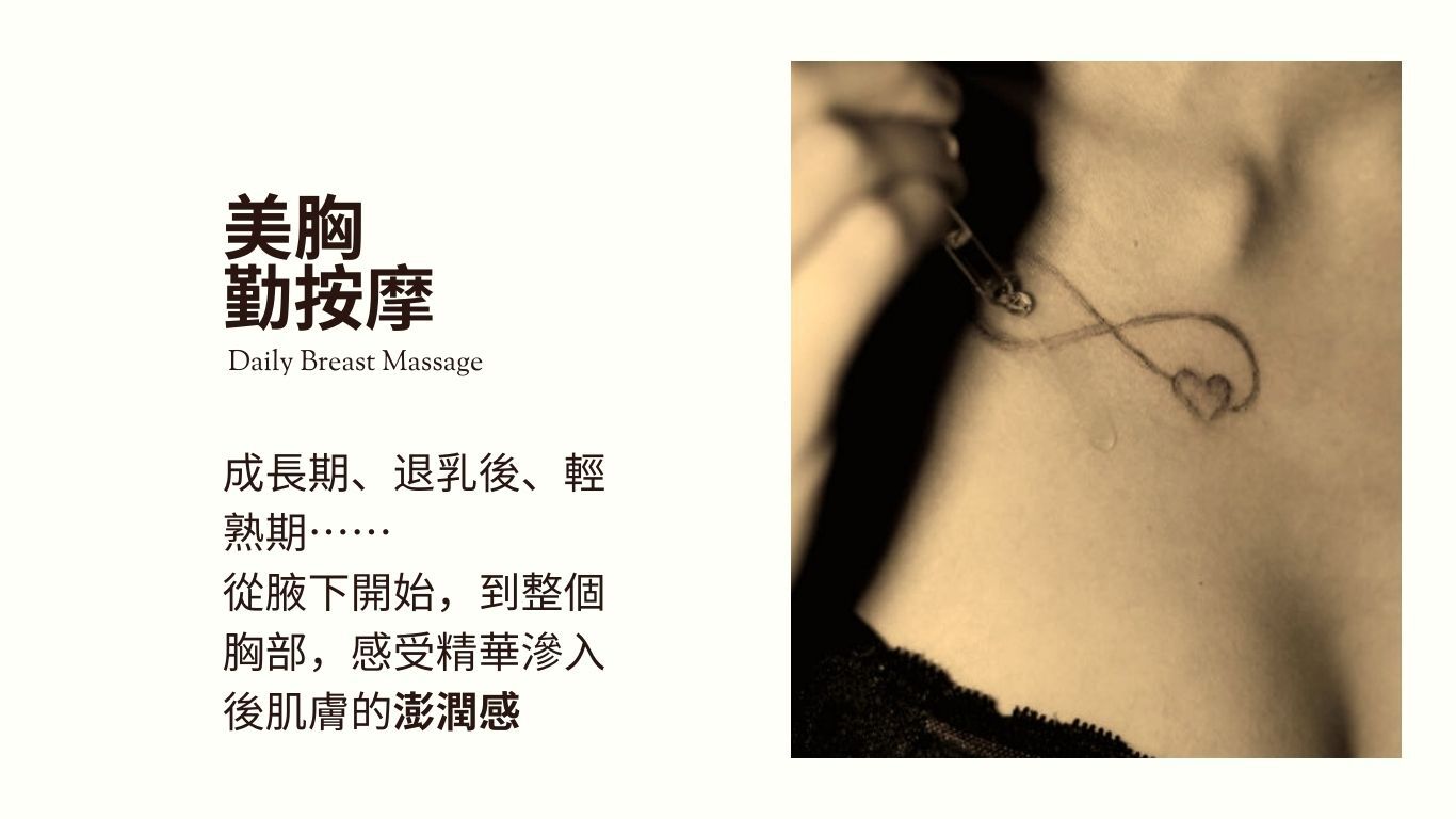 每日清潔後,取適量精華於掌心溫熱後,以打圈方式輕柔按摩胸部肌膚,配合專業手法由下往上按摩至吸收,可搭配胸部護理保養流程提升使用感受。