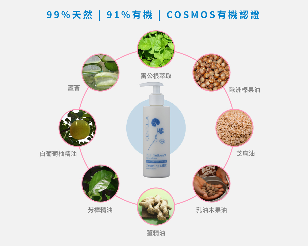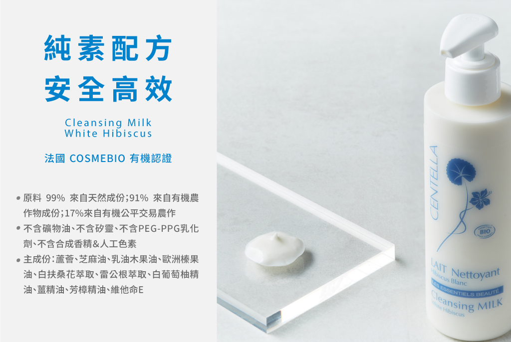 一款質地綿密細緻的有機潔膚乳,溫和卸妝、潔膚,有效去除殘妝及髒汙,同時不傷害肌膚,完成卸妝過程工作。