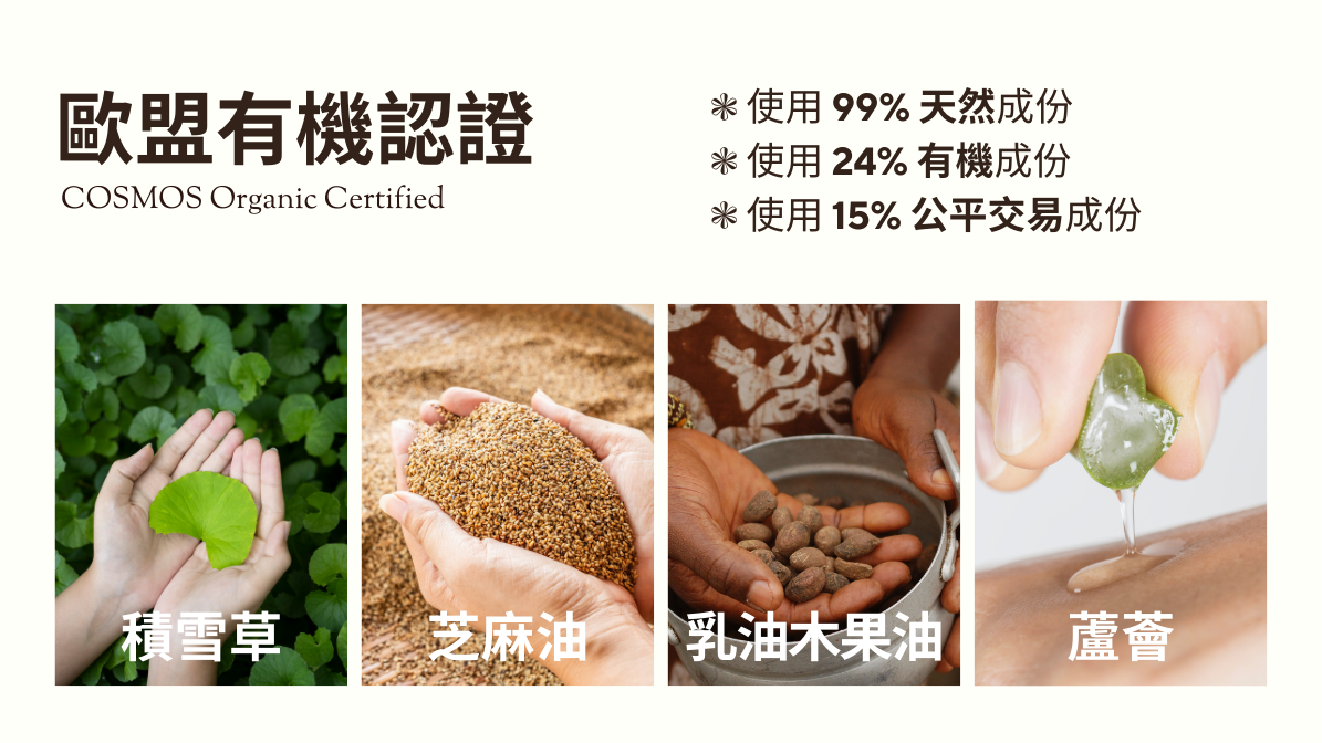 ➤ 法國有機認證:99%天然成分,24%有機成分,通過 COSMOS 有機認證,孕媽咪與寶寶皆可安心使用