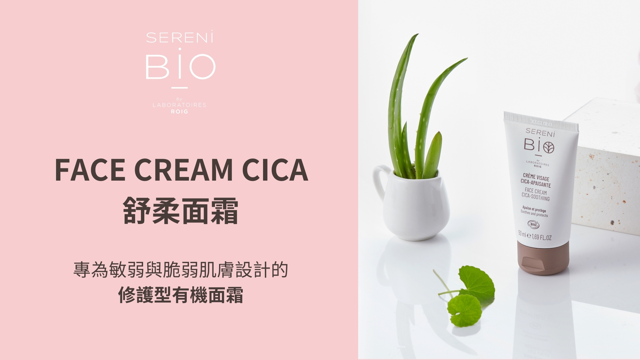 【SERENI BIO 舒柔面霜】專為敏弱型肌膚研發,是一款具備舒緩、修護與長效保濕功效的面霜。COSMOS 有機認證,全成分中 99% 來自天然、31% 來自有機成分,並使用 14% 公平交易成分,由在法國醫療機構第一線的公益美容師團隊合作研發,特別適合因外在環境刺激或治療過程而變得脆弱的肌膚。