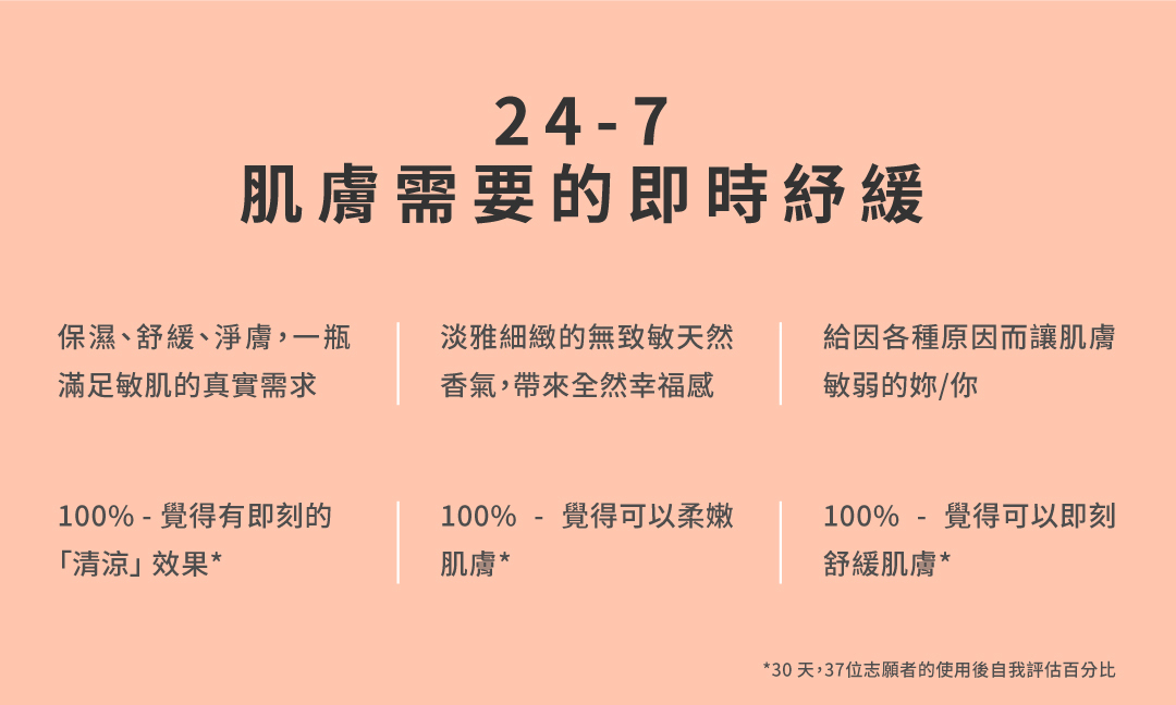 ➤ 敏感肌專用:經皮膚科醫師測試,不含酒精與刺激性成分,極度敏感肌適用