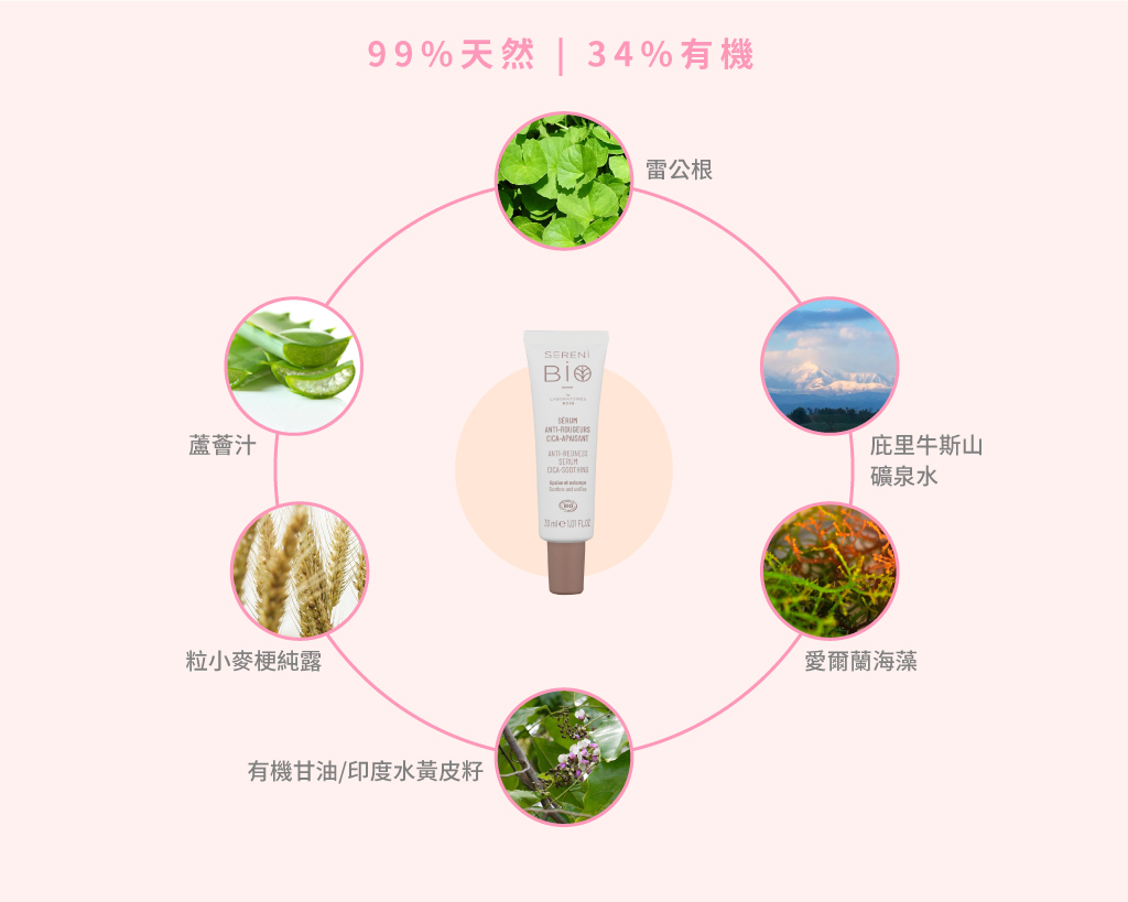 ➤ 法國有機認證:COSMOS 認證配方,99%天然成分,34%有機成分