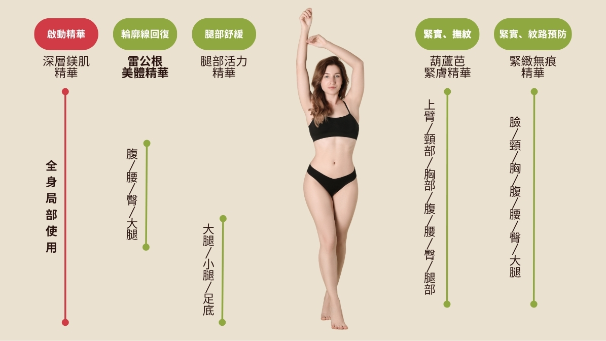 結合雷公根、七葉樹、金縷梅、木賊與常春藤植萃,孕期、產後及日常腿部舒緩保養皆適用,也是運動前暖身、減輕腿部肌膚壓力的理想選擇。