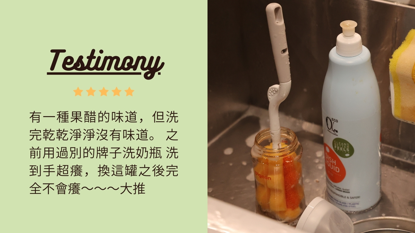 ➤ 不添加石化成份、化學合成香精、化學合成色素,寶寶食器也能安心洗淨