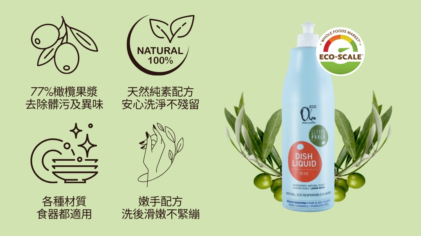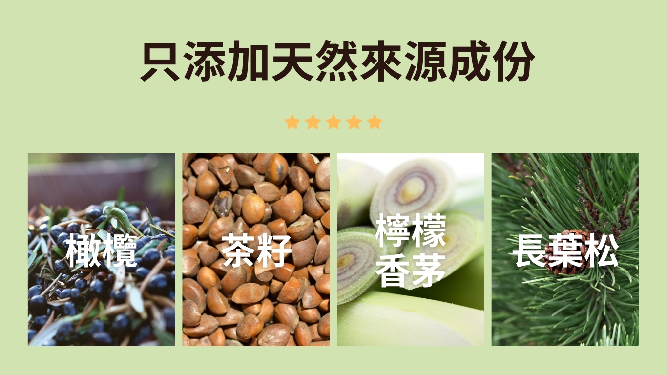 ➤ 專利橄欖果漿萃取,含橄欖果精華、天然果醋及天然酒精,有效清潔、除味、抑菌