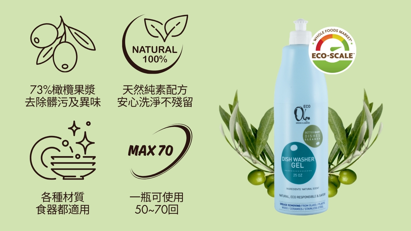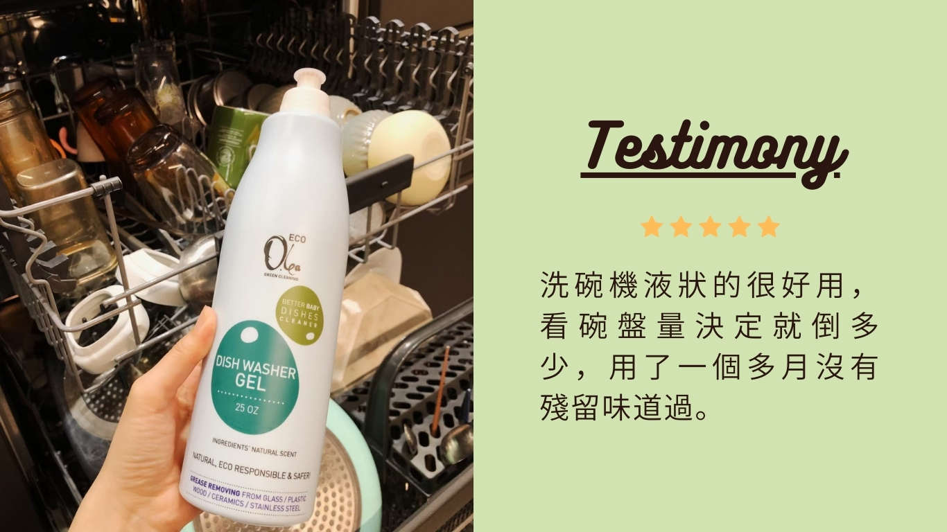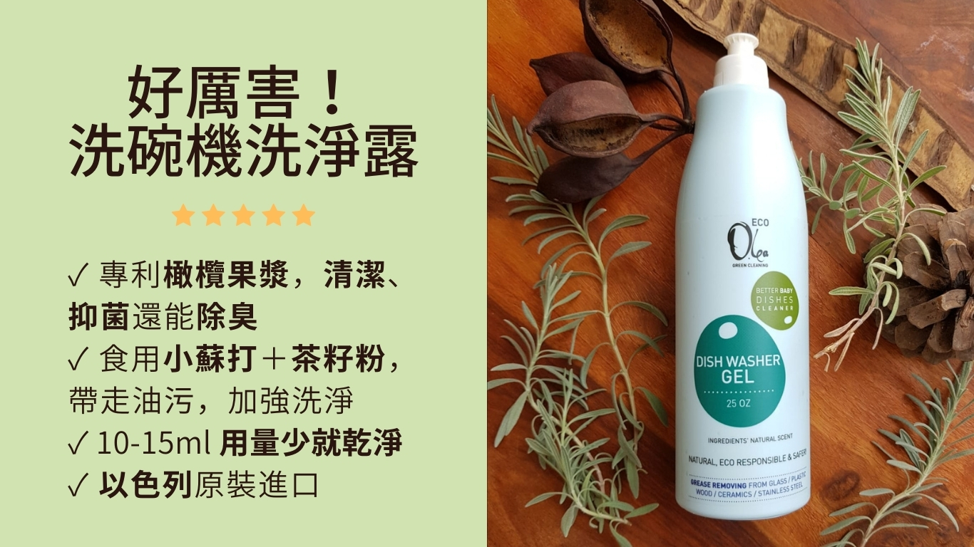 洗碗機是我們的好幫手,但是因為使用家庭還不普遍,在台灣較少為了洗碗機而進口的洗碗機專用天然洗碗精,多半使用洗碗機錠,但常常會有小蘇打粉末殘留,也無法因需要而調控使用量。現在 ECO OLEA 提供家有洗碗機的妳更好的選擇。