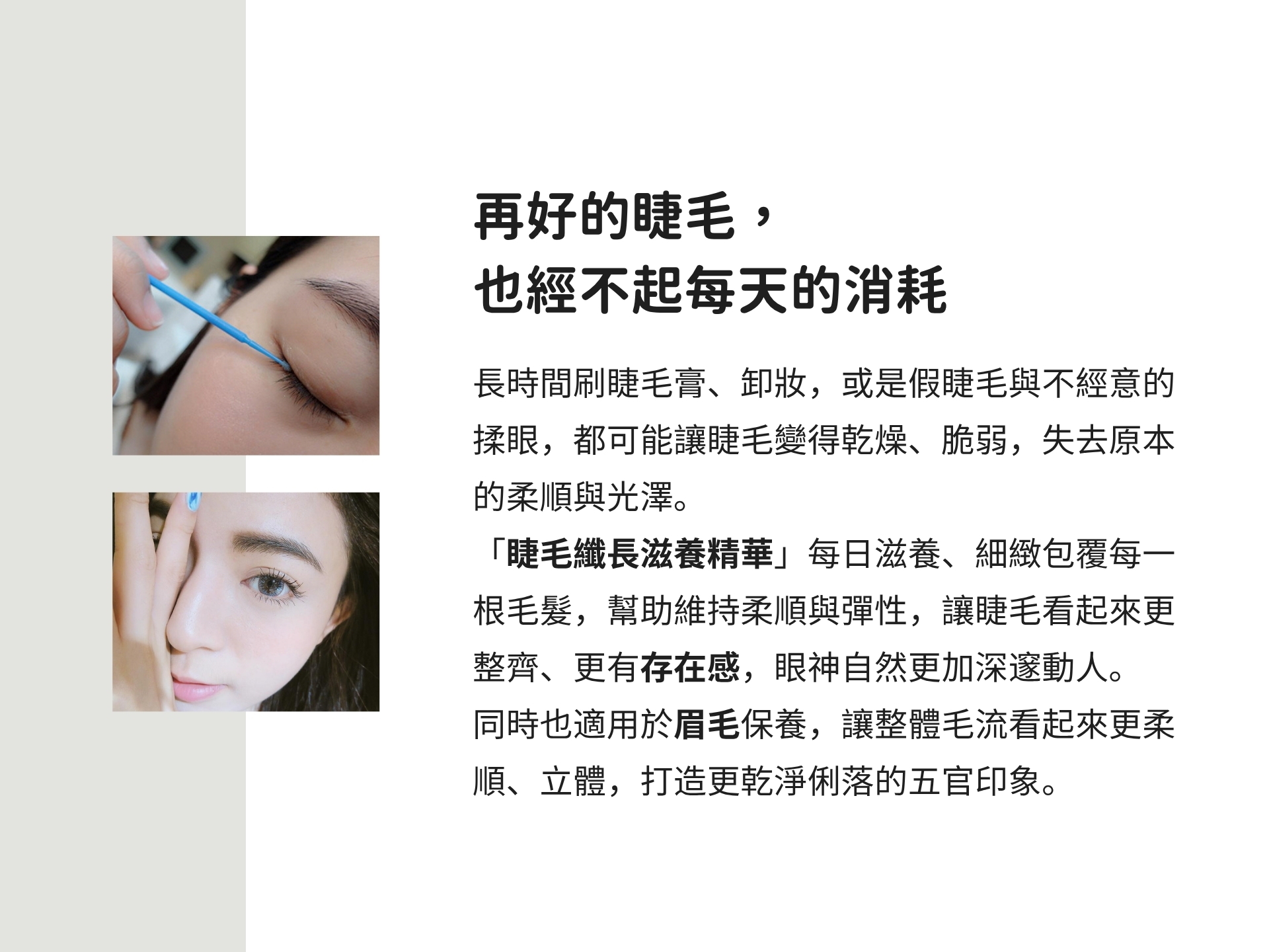 A:睫毛纖長滋養精華的配方單純溫和,適合日常睫毛保養。首次使用建議少量測試,若有不適請暫停使用。