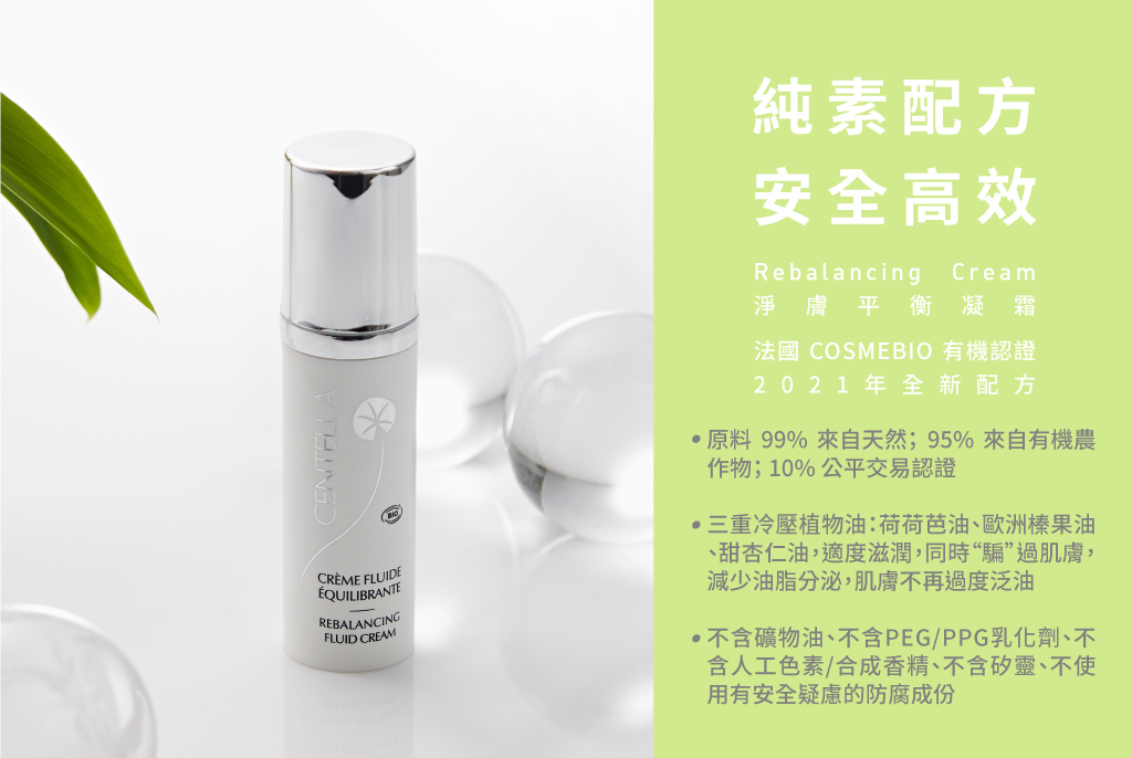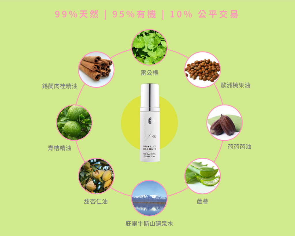 95% 有機成份、輕盈無負擔的凝霜質地,可幫助肌膚一整天的控油並平衡油水分泌。