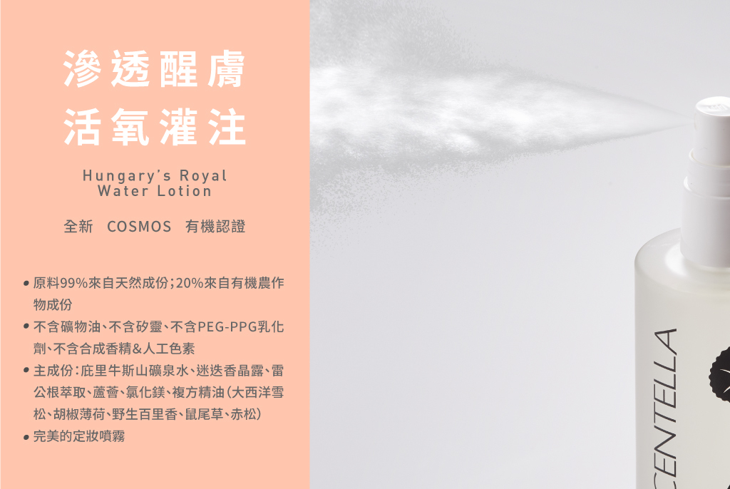 靈感源自14世紀匈牙利皇后的青春秘方,皇后青春露以榮獲 ECOCERT 有機認證 的天然配方,結合歐洲珍稀植萃與礦物微量元素,打造現代女性專屬的高效修護噴霧。