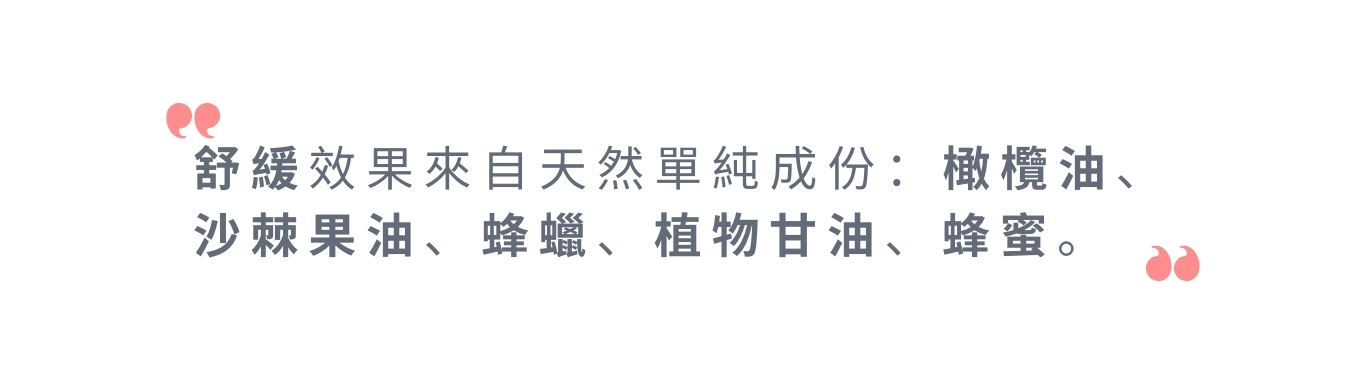 ➤ 含沙棘果油與蜂蜜,舒緩乾燥、柔潤肌膚,適合全家大小使用