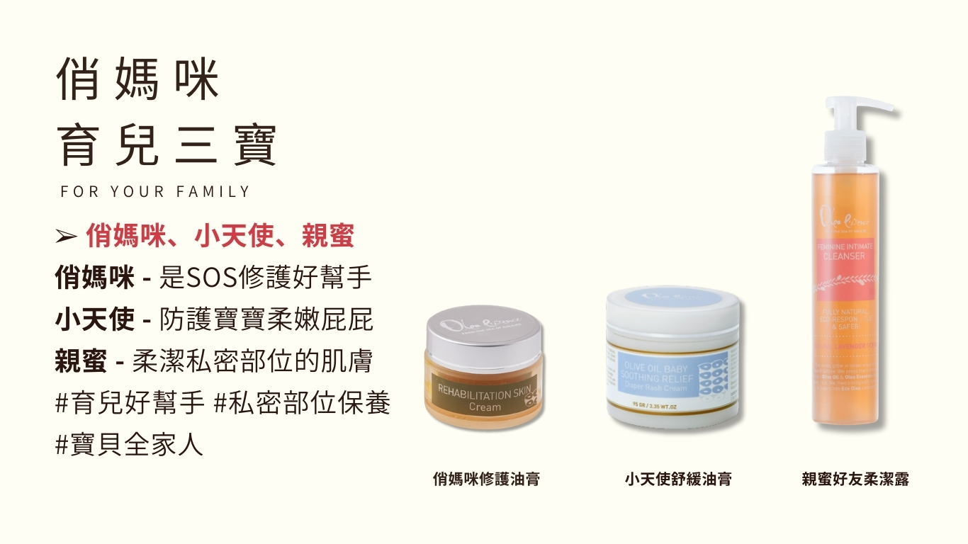 Olea Essence 俏媽咪全能修護油膏 採用自家農場新鮮現採橄欖果實,24小時內以低溫冷壓方式萃取出未經過濾的初榨橄欖油,搭配高修護力的沙棘果油、高保濕潤膚的天然蜂蜜與蜂蠟,調配出這瓶家庭必備的 全天然萬用護膚油膏。